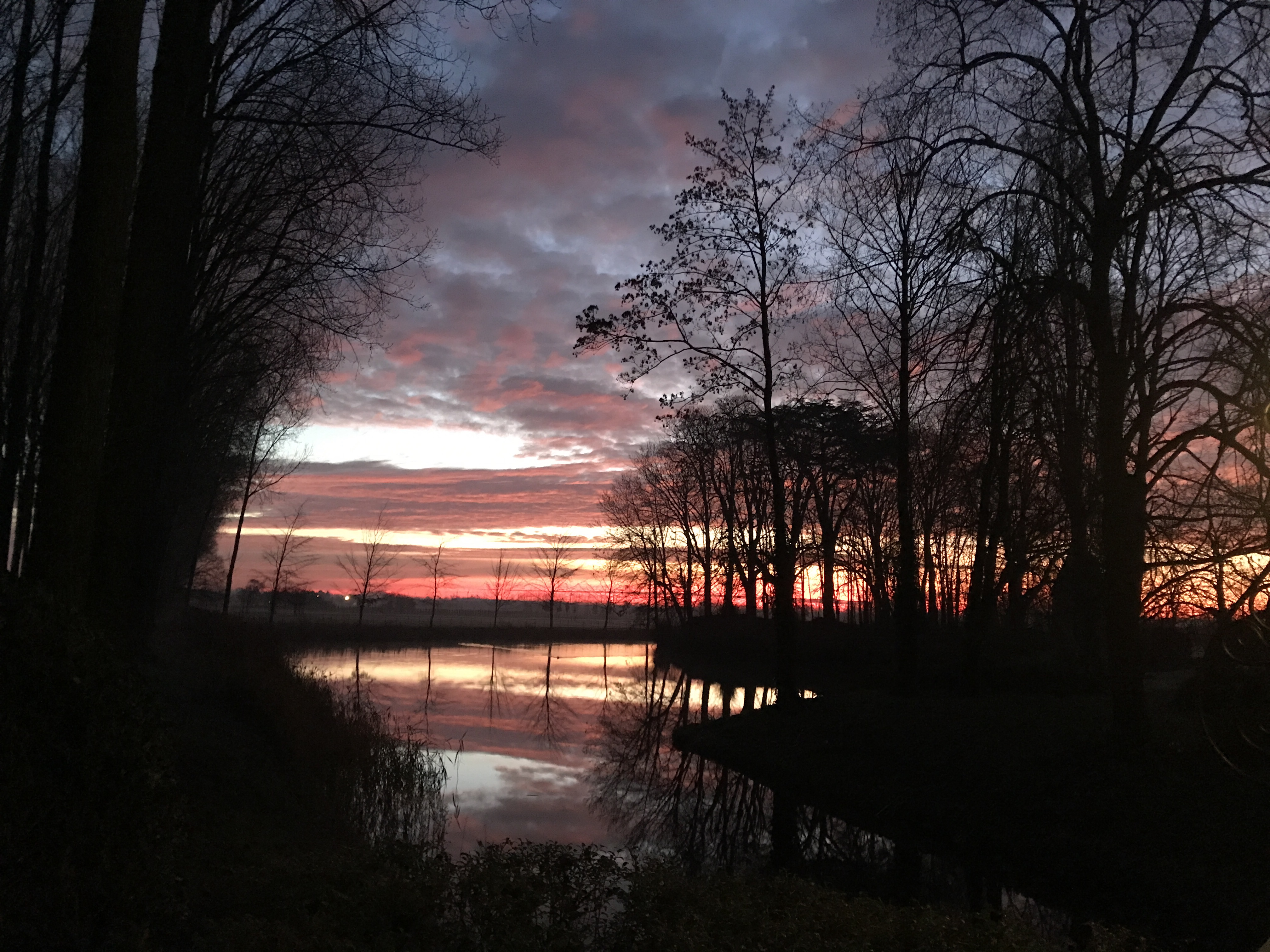 Met één oog op de oostelijke hemel, weet ik dat ik iets moois te zien zal krijgen… dus sluit ik snel het gebruikelijke compromis met Neltieke… Oké, we gaan wandelen, maar ik ga ook foto’s nemen…
