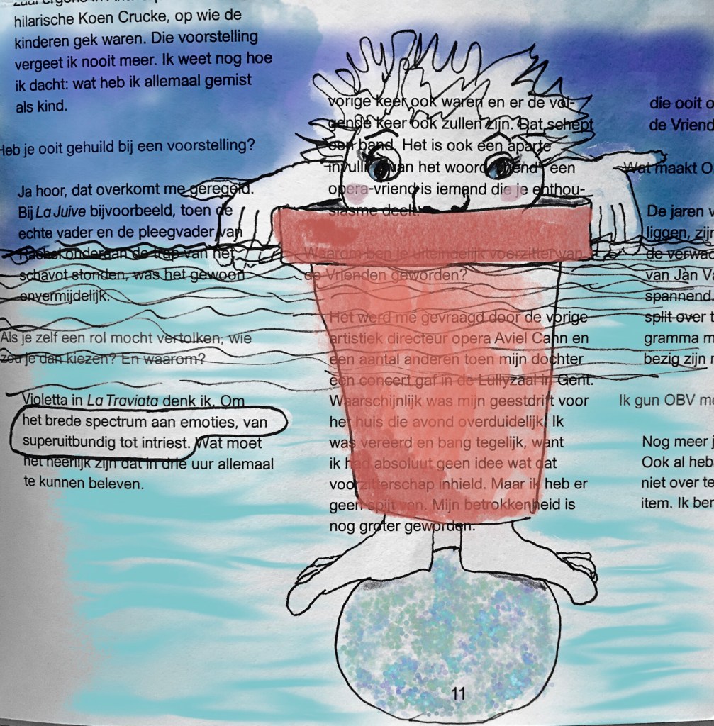Ik heb vorige week enkele boekjes gemaakt, met allerlei soorten papier in. Er zitten ook bladzijden uit tijdschriften in, kranten, tekenpapier, printpapier… Zo’n zeven signaturen (voor wie het begrijpt) zitten er in het mooi ingebonden boekje dat ik gisteren in mijn zetelke doorbladerde… Content van mijn eigen, voelde ik me…