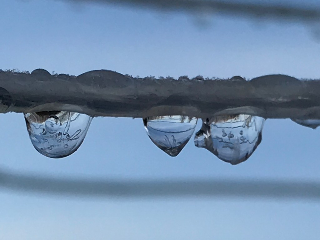 We hangen hier ondersteboven aan een bevroren wasdraad.